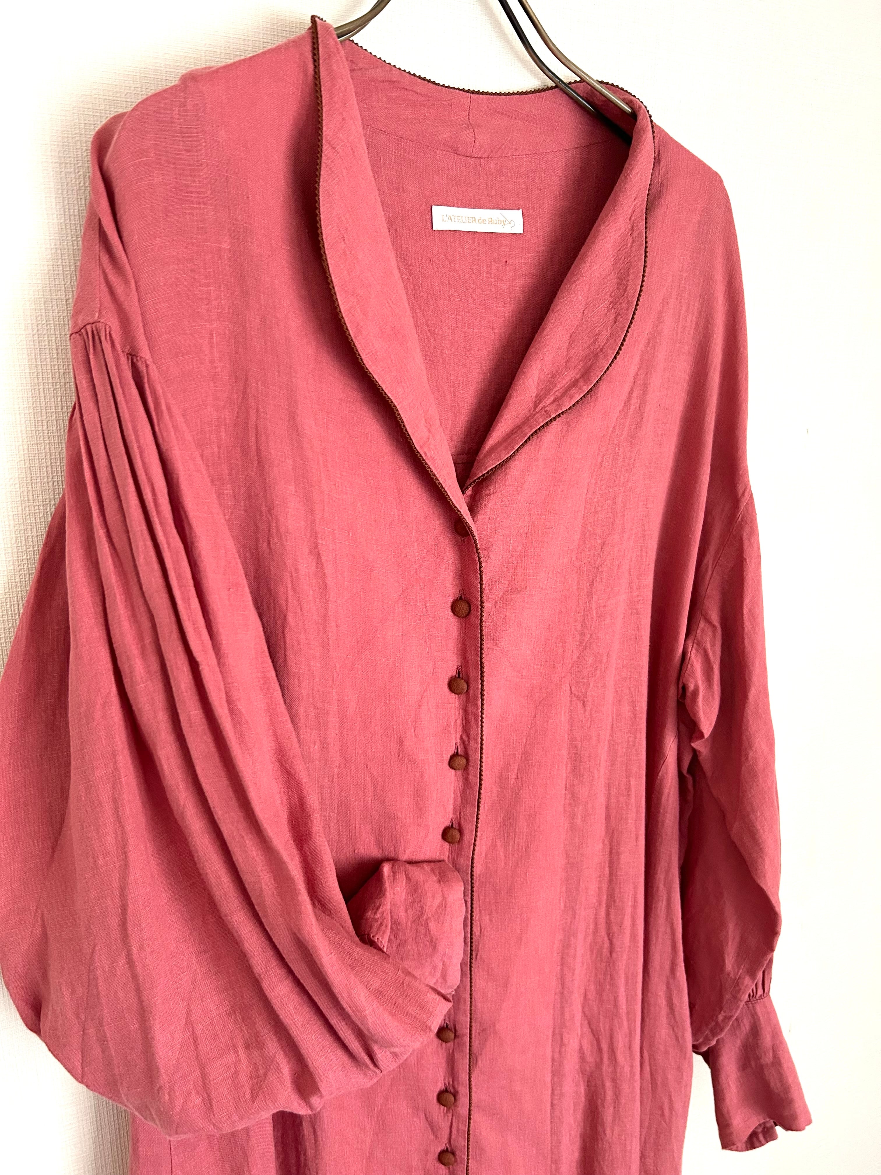 襟元とボタンを際立たせるために袖下に切り替えを入れて、裾に向かってなだらかにボリュームを出しています。