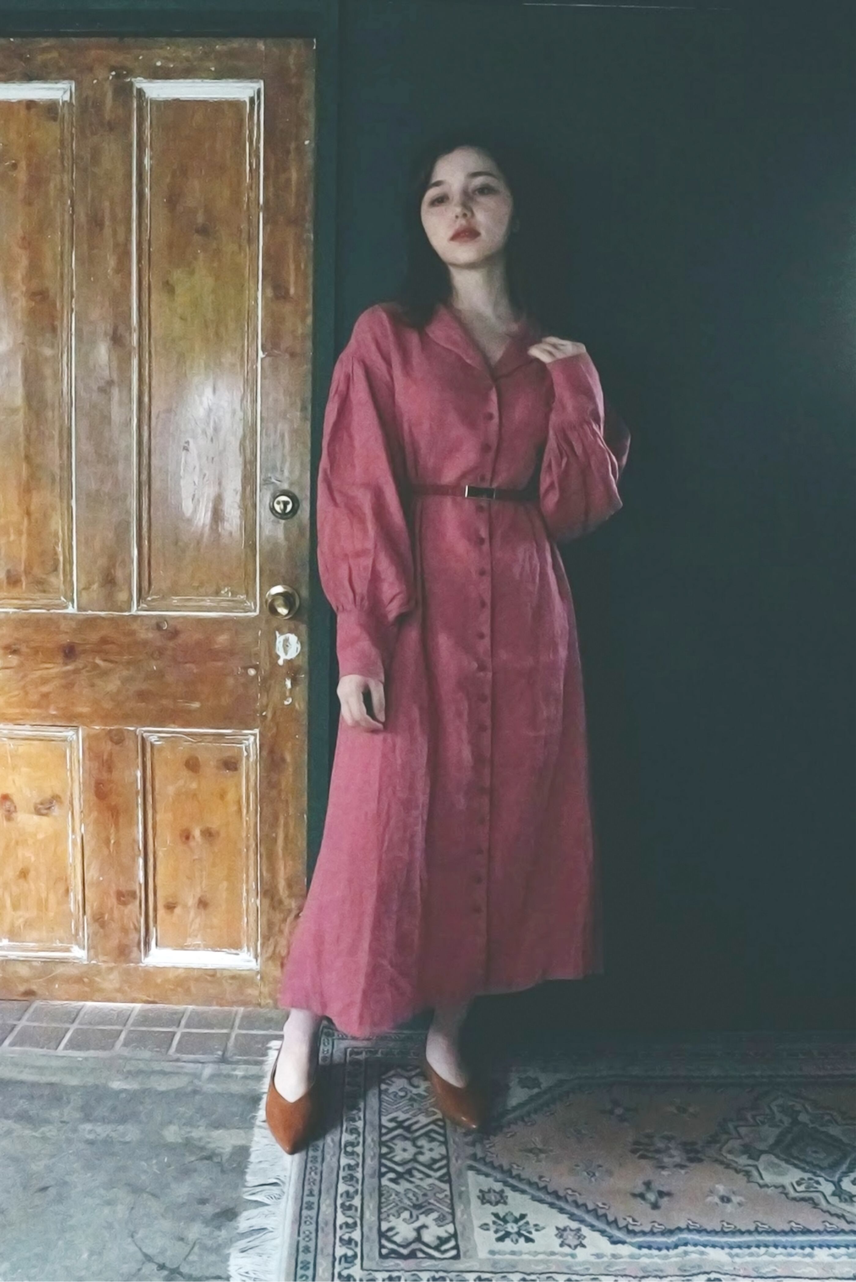 パイピングやベルトにテラコッタカラーを合わせたことで、可愛らしくなりすぎずに着用していただけます。