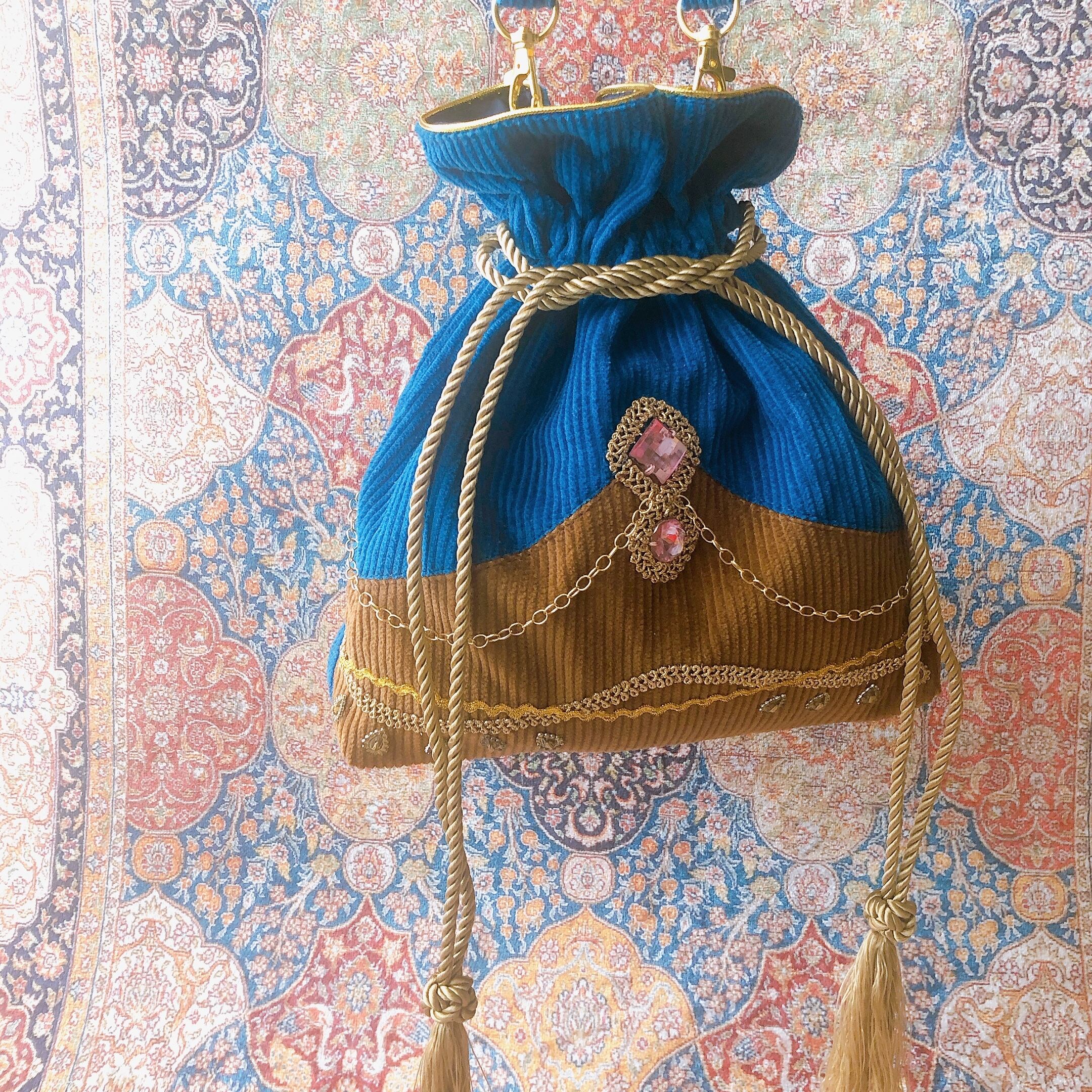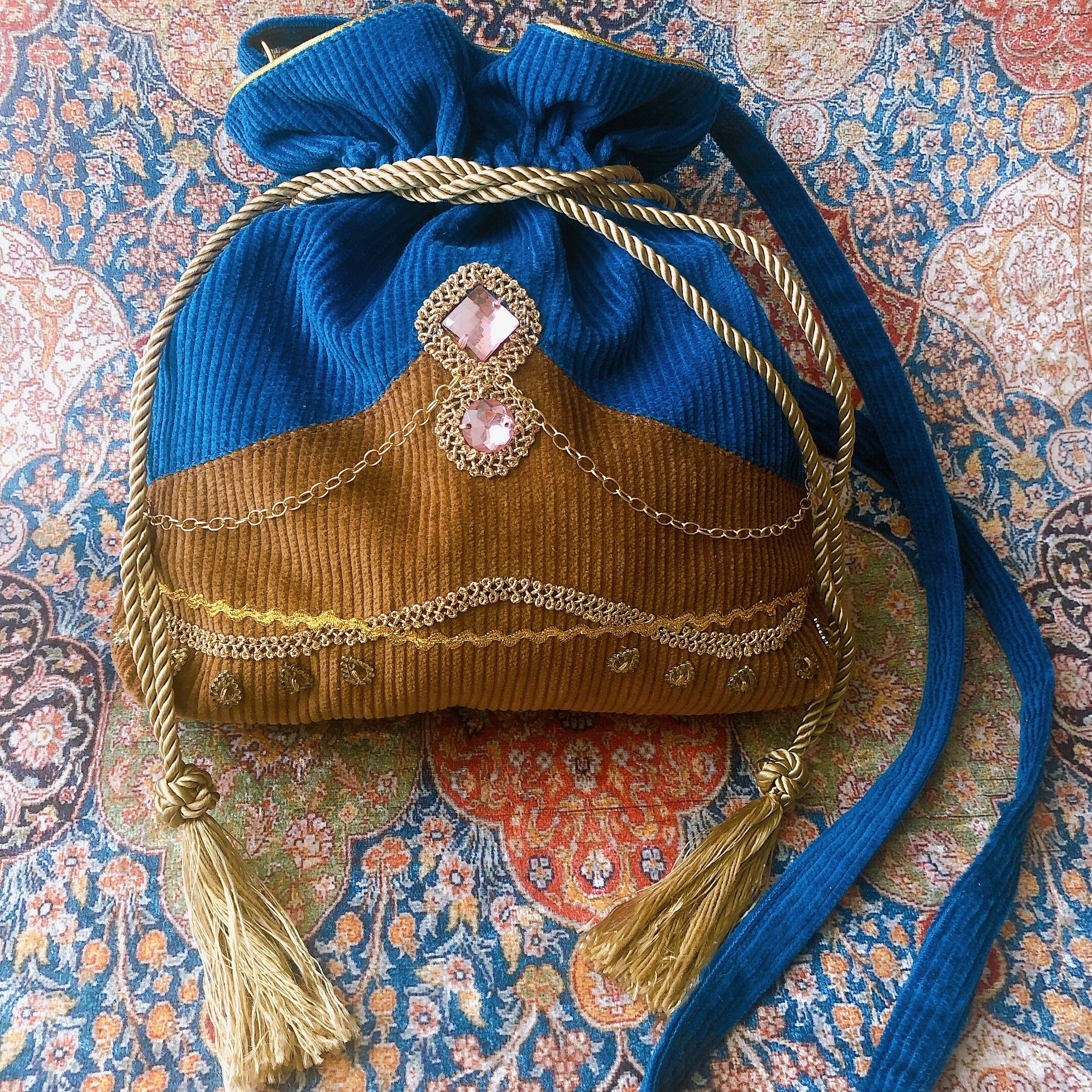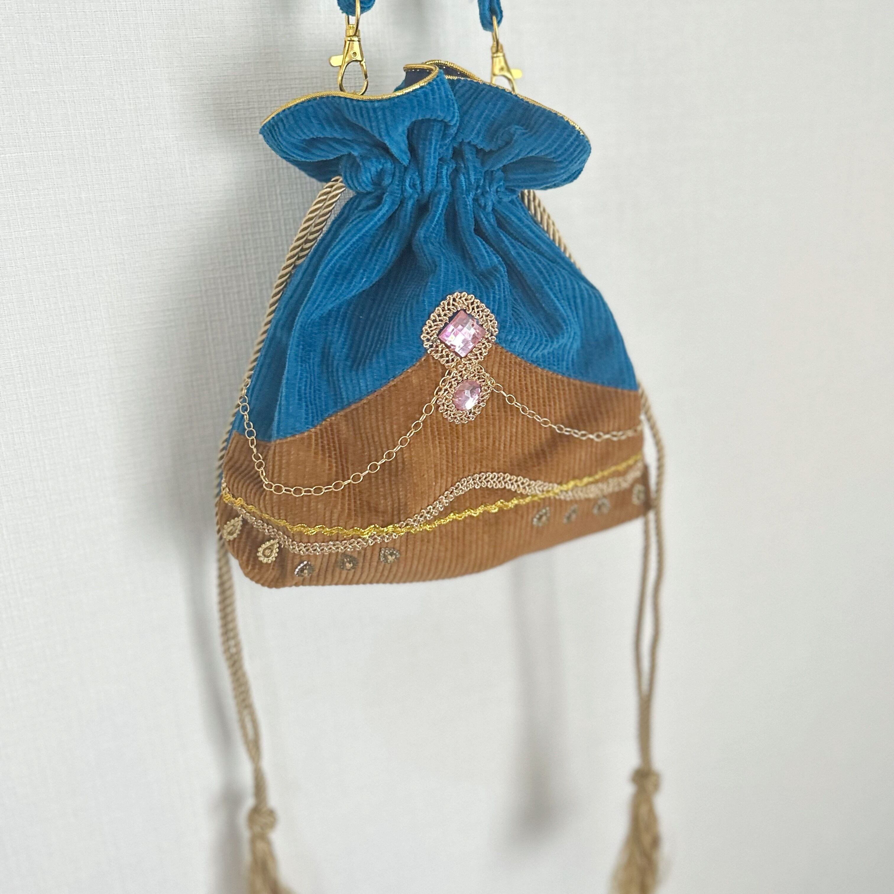 節目がちなターバンを身につけたプリンセスをイメージした巾着バッグを作ってみました。