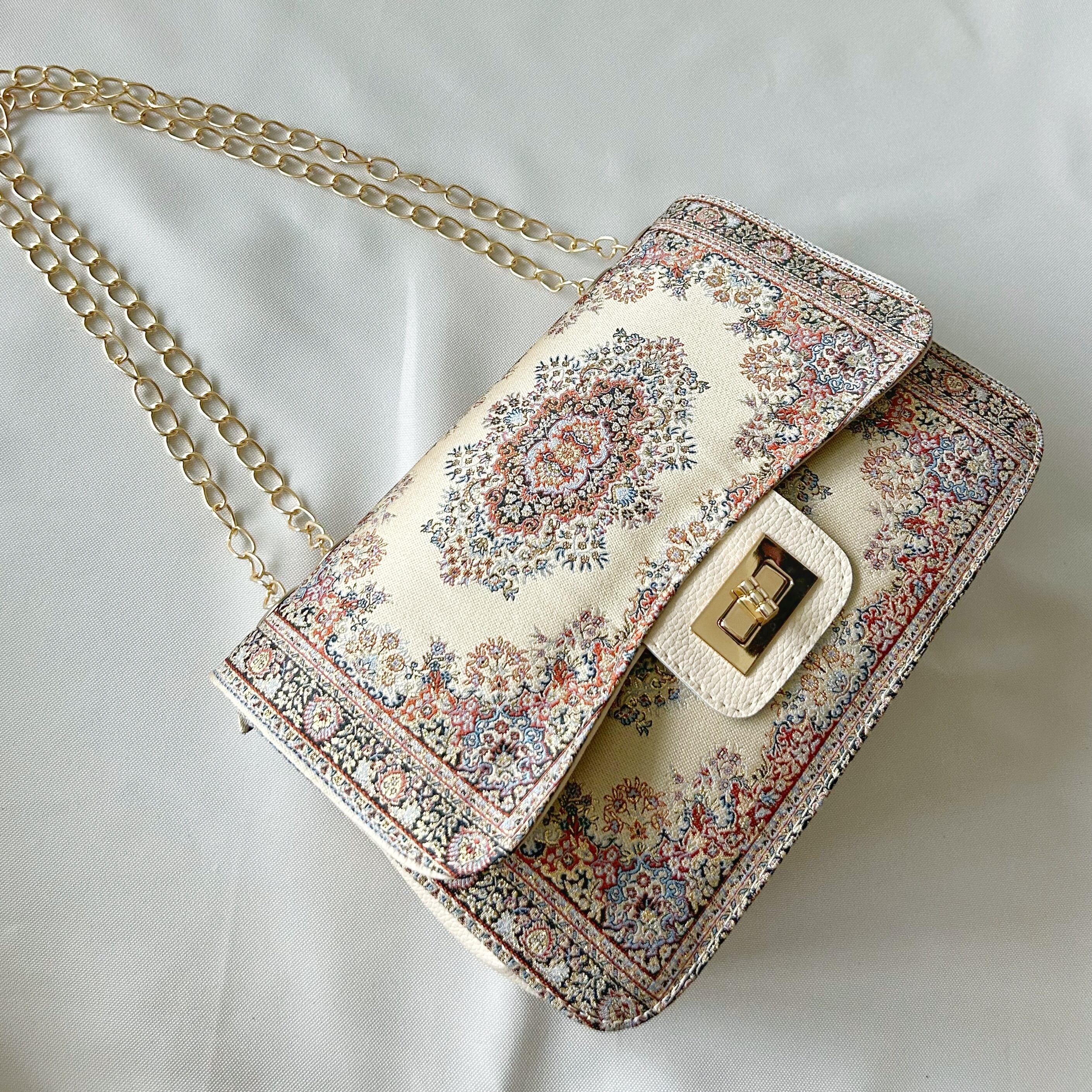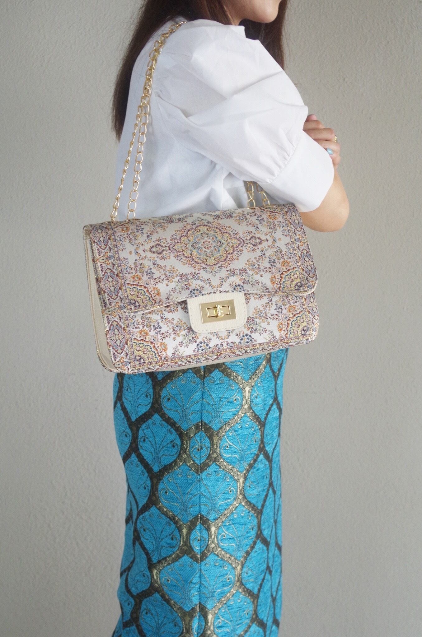 まるで魔法の絨毯のような模様の織り生地のトルコ製バッグです。