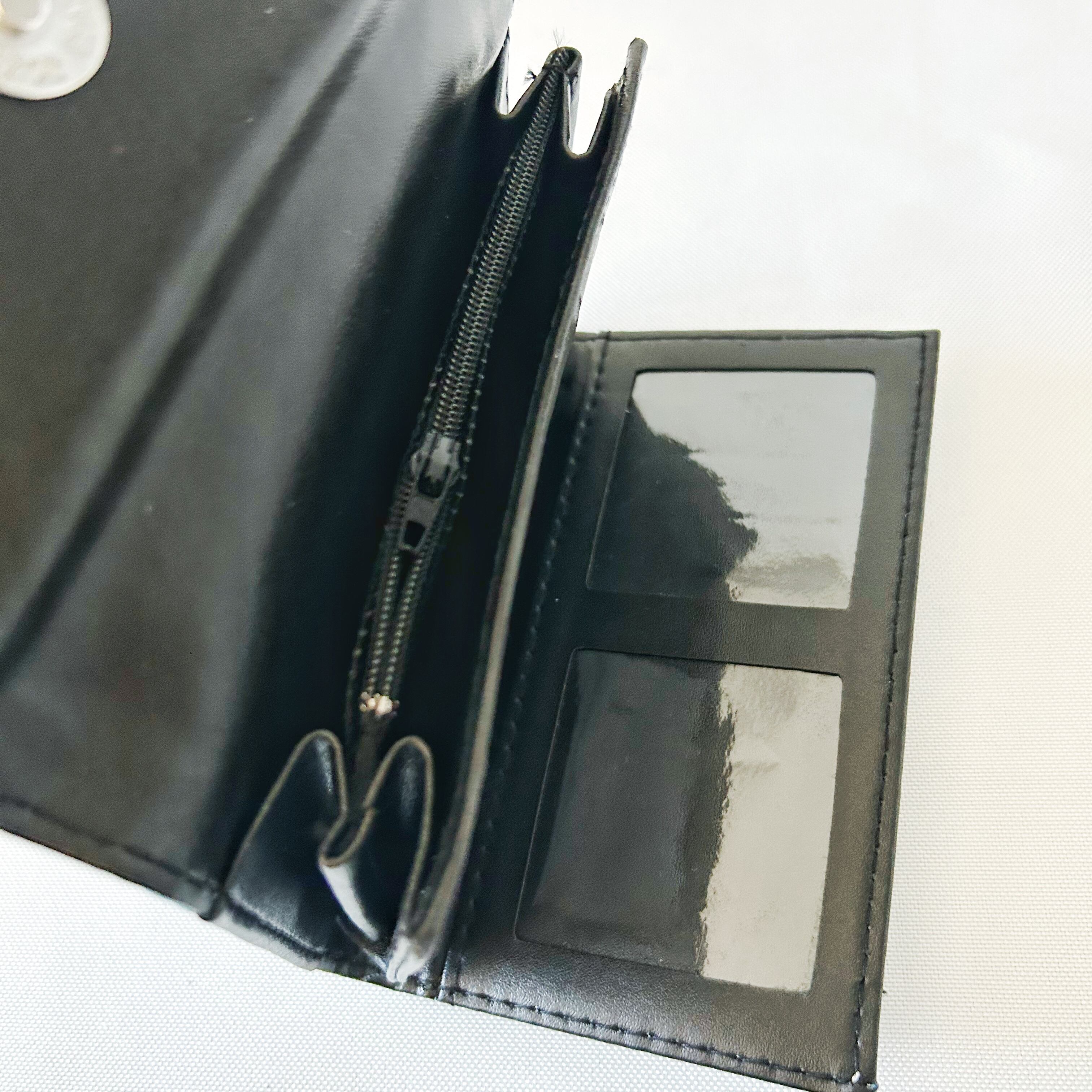 スナップボタンを開くとカードを収納するスリットやファスナー付きの小銭入れ等がついています。