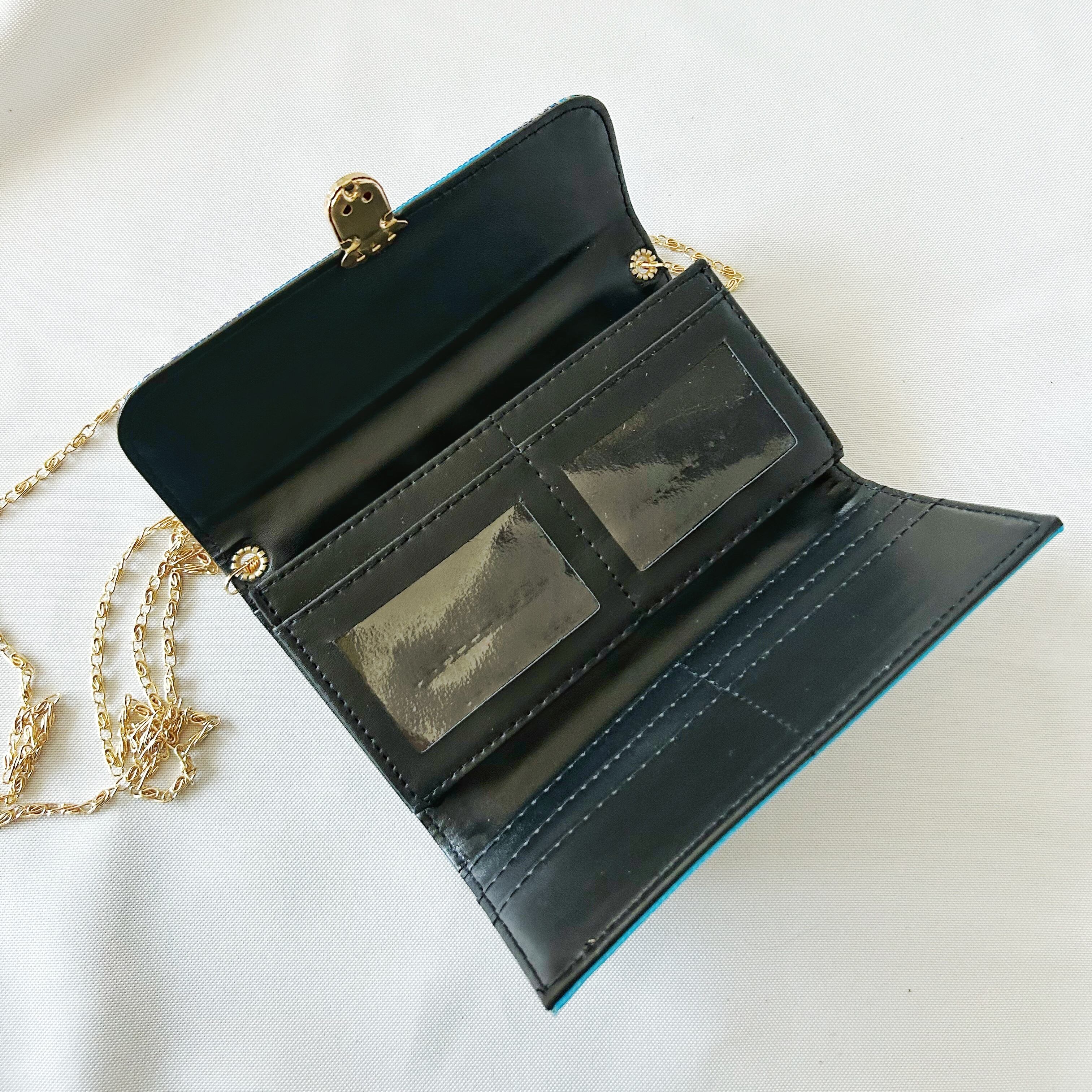 取り外し可能な長めのチェーンがついているのでちょっとした外出にはこれだけ肩や斜めにかけて出掛けることも。