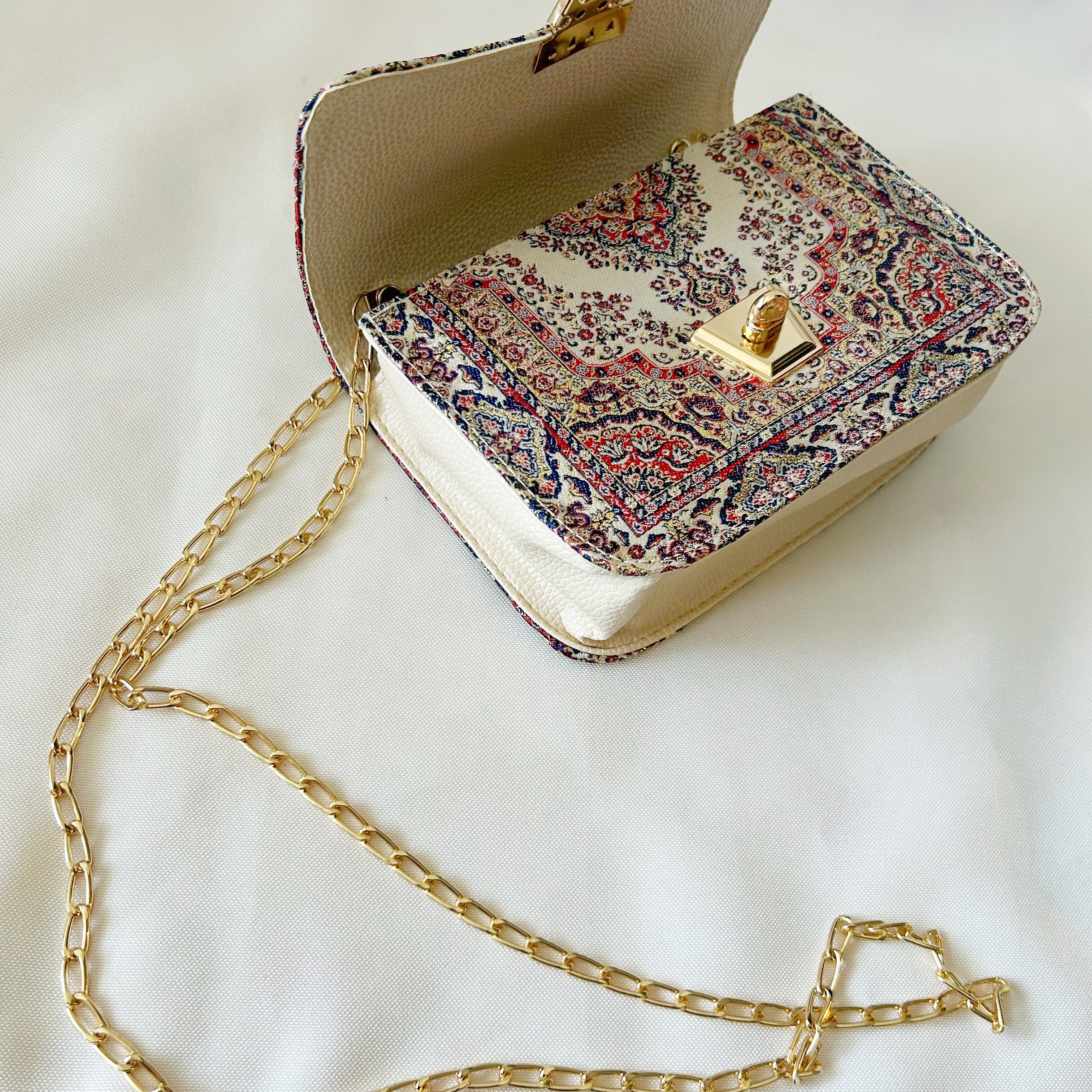 まるで魔法の絨毯のような模様の織り生地のトルコ製バッグです。